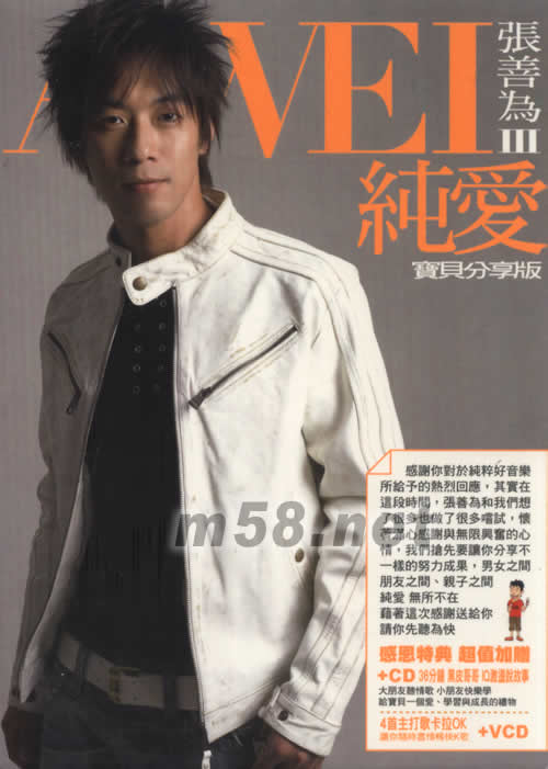 價格為估,以實到貨為準(zhǔn)! 純愛(寶貝分享版)(m58.net) 感謝你對於純粹好音樂所給予熱烈回應(yīng),其實在這段時間,張善為和我們想了很多也做了很多嘗試,懷著滿心咸謝與無限興奮的心情,我們搶先要讓你分享不一樣的努力成果,男女之間朋友之間、親子之間 純愛 無所不在 籍著這次感謝送給你 請你先聽為快 感恩特典 超值加贈+CD 36分鐘黑皮哥哥IQ激蕩說故事 大朋友聽情歌 小朋友快樂學(xué)給寶貝一個愛、學(xué)習(xí)與成長的禮物 4首主打歌卡拉OK VCD 讓你隨時盡情暢快K歌