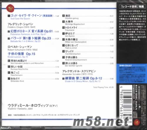 霍羅維茲倫敦演奏會HOROWITZ IN LONDON - CHOPIN, SCHUMANN, SCRIABIN(SHM-CD系列日本限量版)(m58.net) 錄音于 1982年
