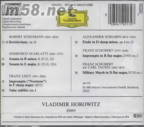 霍羅維茲 紐約1985專輯背面圖片