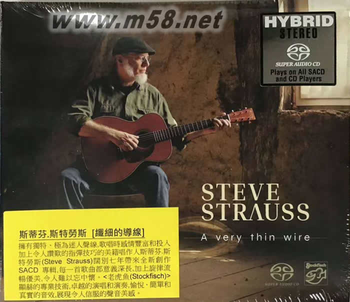 纖細的導線 A VERY THIN WIRE SACD(m58.net) Steve Strauss (主唱、結他及電結他) Ian Melrose (結他、低音哨笛、 多布羅共鳴結他、 韋斯森博恩滑管結他及膝上鋼棒吉他) Lars Hansen (低音結他) Heinz Lichius (鼓及敲擊) Beo Brockhausen (上低音薩克斯管、弓拉薩泰里、 魔音琴、手碟、長笛、科茲威爾鍵盤琴、單簧管、長 笛、烏杜鼓(又名"巫毒鼓")、敲擊及高音薩克斯管) Wolfgang Roggenkamp "(哈蒙德b3"電子風琴) Hans-Jörg Maucksch (無格低音大提琴) Lea Morris (和唱) 1. 一個擁有獨特,極為迷人聲線,歌唱時感情豐富和投入,加上令人讚嘆的指彈技巧的美籍唱作人斯蒂芬‧斯特勞斯(Steve Strauss)同時亦是其故鄉紐約州(New York State)的社工,在過往的三十多年常以其創作的歌曲用作描繪、闡述和訴說其所見所聞和個人經歷與感受見稱。他的最新專輯《纖細的導線(A Very Thin Wire)》仍然保存這一特色但更為入世及感性,發人深省。 2. 專輯內含十三首全新創作,除了由著名作曲家斯科特‧博耶(Scott Boyer)和湯姆‧懷特斯(Tom Waits)分別所譜寫的《請與我一起(Please Be With Me)》和《(尋找)週末夜的情懷(Looking For) The Heart Of Saturday Night)》外,其余的十一首歌曲包括主題曲《纖細的導線(A Very Thin Wire)》皆是斯特勞斯的嘔心嚦血杰作,盡顯其卓越的作曲和填詞的才華和充滿吸引力的歌聲,令人難以忘懷。 3. 斯特勞斯使出渾身解數,以其成熟沉鬱,充滿力量與感倩的歌喉,情深細致地演繹這十三首。他的歌聲道盡了長期失敗者的深切反省;問題青少年的憂戚和被誤解的感受;不穏定的人生如在黑夜中踏著掛在半空的繩索前行而有伴相陪的可貴;當我們感到前路茫茫時必須停下來仔細考慮怎樣再向前行;偷竊與愚昧的行為在歷史流程中不斷重演而沒有人理會這些事態對兒童的影響;為甚么我們對我們孩子激情吶喊的聲音產生恐懼?我們以前不是像他們希望改變這世界嗎?這一切一切只要有愛便能引領你找到光明之路,重回正軌,從而得到家庭溫暖。每一首歌曲都意義深長,加上旋律流暢優美,令人難以忘中懷。 4. 有份參與此專輯內歌曲演奏的樂手皆是「發燒」樂界的頂級高手,加上錄音製作由殿堂級錄音師古達.普勒(Günter Pauler)親自負責操作和調控,母盤製作由韓斯-約格‧莫斯克施(Hans-Jorg Maucksch)操刀,顯赫的專業技術,卓越的演唱和演奏,愉悅、簡單和真實的音效,展現令人信服的聲音美感。