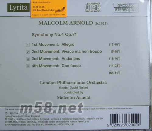 阿諾德第4交響曲(絲綢之路代理)專輯背面圖片