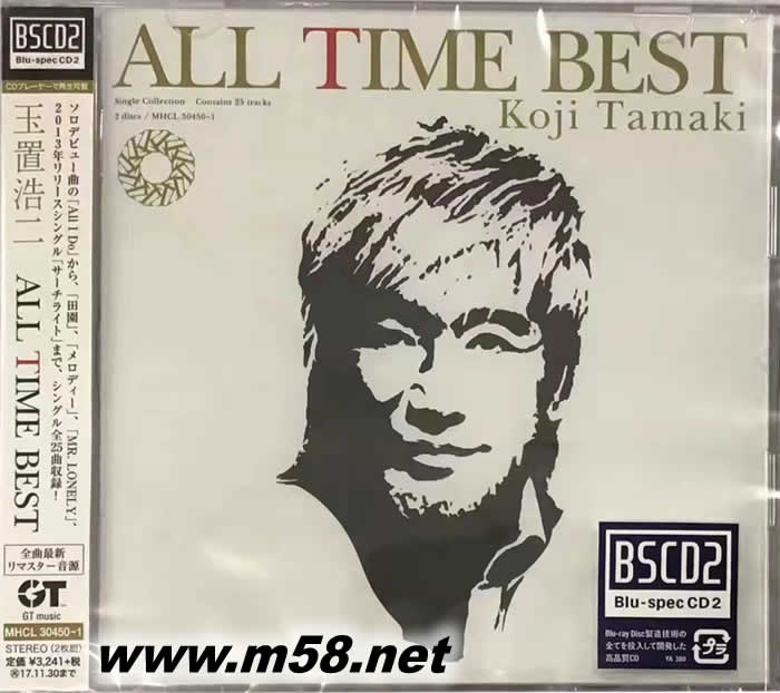 ALL TIME BEST BDA Blu-spec CD 高音質盤 日本原版(m58.net) 這是自1982年在安全地帶正式出道以來,作為日本代表性歌手而創作出許多名曲,并收錄了跨越世代受到支持的玉置浩二所有單曲的同名主打歌,這是第一次的ALL TIME BEST。超越了在籍唱片公司的范圍,從solo出道曲《All I Do》到大熱曲《田園》、名曲《旋律》、《MR.LONELY》,還有自己出演的電視劇《東京Bandwagon》的片尾曲《探照燈》收錄了以壓倒性的歌唱力表現的珠玉的25曲。
