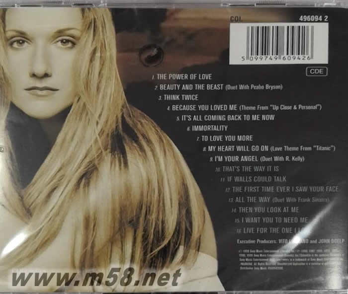 ALL THE WAY...A DECADE OF SONG 歐版專輯背面圖片