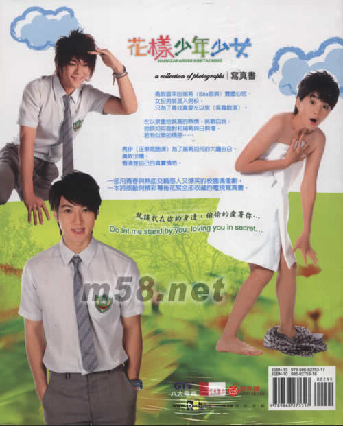 花樣少年少女寫真書(m58.net) ELLA.吳尊.汪東城.飛輪海團體領(lǐng)銜主演 勇敢真率的瑞希(ELLA飾演)費盡心思\女扮男裝混入男校,只為了尋找真愛左以泉(吳尊飾演). 左以泉重拾跳高的熱情\熱戰(zhàn)自我:他該如何面對和瑞希與日俱增\若有似無的情感..... 秀伊(汪東城飾演)為了瑞希如何的大膽告白\勇敢出柜,看清楚自己的真實情感. 一部用青春與熱血交織感人又爆笑的校園偶像劇,一本將感動與精彩幕后花絮全部收藏的電視寫真書.