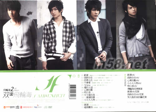 雙面飛輪海(亞洲全勝慶功版)港版(m58.net) 加送5首MV 及花絮 2008最強男團飛輪海 風暴強襲全亞洲 演歌雙棲最強男團 排行冠軍專輯「雙面飛輪海」 亞洲全勝慶功版 CD+DVD+28頁彩頁寫真詞本 ◎雙面飛輪海亞洲全勝慶功版,超有誠意,全新造型,28頁全彩寫真詞本 ◎DVD豪華收錄新窩、為妳存在、心裡有數、小小大人物、明日香5首MV及飛輪海亞洲風暴、新窩及為妳存在MV及封面拍攝等花絮,全長近60分鐘,最想珍藏專輯影音內容一次擁有!