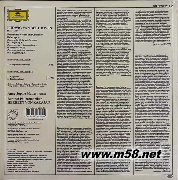 穆特 卡拉揚 柏林愛樂 - 貝多芬 小提琴協奏曲VIOLINKONZERT VIOLIN CONCERTO