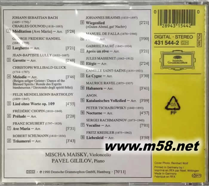 莎·麥斯基 & 帕威爾 基里諾夫 冥想 Mischa Maisky & Pavel Gililov - Meditation 大提琴與鋼琴專輯背面圖片