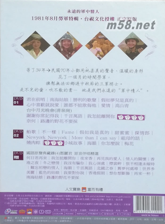 2. 國語原聲典藏錄(4)鄧麗君 原音伴唱精選DVD 片長約100分鐘