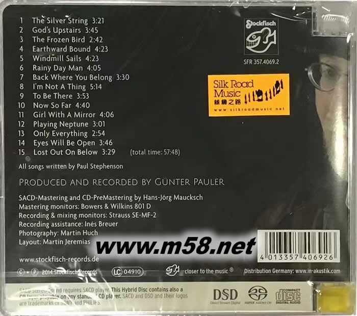 有鏡子的女孩 GIRL WITH A MIRROR SACD(m58.net) 最頂級的錄音 最發燒的人聲 Stockfisch唱片錄音採用二十八位元的類比數位轉換器、NAGRA-D等超發燒設備錄製,並以B&W NAUTILUS 801進行鑑聽。 蔡克信醫師 撰文 保羅.史帝文生成長於英格蘭西北部,他的音樂偶像有三人,一是披頭四,第二是James Taylor(連帶吉他手Chris Jones),第三位是Sting;另外他也非常喜愛Simon & Garfuncle、Dylan、McTell及其他民歌手。 1979年保羅從荷蘭阿姆斯特丹往歐洲謀生,一開始多在酒吧年輕人聚集處,偶爾在音樂節或音樂會、電臺電視打工。演唱以二三人或樂團組合演出,保羅也適時與搭檔錄製唱片,但大多都是個人演唱、錄音與一把吉他(1991年發行《A Bend In The Road》),之后保羅化名為Tom Zola(名字取自19世紀小說家Thomas Hardy與Emile Zola)。幾年后,移居法國,以翻譯維生,而保羅在臥房以最基本的錄音老機器錄唱獲得老虎魚老板青睞,希望幫他出版專輯,雖然音樂之路一路顛跛,經此轉捩終得以出頭天。就在2002年出版《Light Green Ball》專輯,接著再發行《These Days》專輯,持續受到肯定。 2014年這張專輯《Girl With A Mirror》15首詞曲寫於20年間,從「Girl With A Mirror」到「Lost Out On Below」全部是他的手筆。雖然曲調節奏仍是民歌、鄉村、搖滾混合體,但是從他成長背景就影響詞作,它們不像一般敘述歌謠,以詩歌稱之較為適當,歌詞不平鋪直述,令人咀嚼思索,每首歌詞都有賴聆者自行推敲。看保羅的照片,禿額白鬚,氣質就像詩人,從歌嗓判斷,聲音也不像老人。基本上每首歌都是描繪保羅所認知各式人生的故事,許多陰暗面,失敗、覺醒,如失卻信仰的傳教士、汪洋漂流的水手、木鞋勞工、雨中男子、擦窗者、作偽者、樹林中走失的小女孩、午夜泳者、帶鏡的女孩等,無助無奈,但詩句仍點出希望,如詩般點亮憂鬱的藍天與烏云。全輯主導的是保羅的歌聲與吉他,基本組合還有另位吉他手及一位電貝斯手。每首音樂還適當搭配和音、doobro(吉普森共鳴吉他)、手風琴、pedal steel(電子鋼弦座式吉他)、高音薩克斯風、長笛、敲擊樂器、 mbira(姆指鋼琴)、鼓組、 弦樂四重奏等,編曲極佳、豐富了詩句,層次了弦律。 Stockfisch唱片錄音採用28位元類比數位轉換器,以NAGRA-D頂級器材錄製,由Hans-Jorg Maucksch后製並以B & W Nautilus 801喇叭鑑聽,透明清晰是其標誌,這張專輯仍由老板兼錄音師 Gunter Pauler 操刀,人聲真實,形體明確,你會聽到保羅的清晰咬字、乾凈歌聲,溫文爾雅,清澈貴氣,如沐春風,如浴秋月。另外,吉他清揚有致,細節無遺,質感細致,頻寬動態都屬上乘。音響迷不妨特別留意敲擊高鈸的輕盈飄逸、大鼓之低沉緊實、電吉他之撥彈勁道與木管弦樂之優美氣韻。作為發燒唱片沒有話說,作為音樂欣賞也極悅耳。