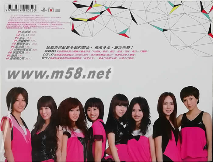 黑GIRL首張同名專輯(臺灣版)(m58.net) 預購贈品:海報(出版前匯款的才有) 超人氣少女偶像團體「黑澀會美眉」今天正式由華納音樂官方宣佈:黑澀會美眉確定加盟!華納音樂也為黑澀會美眉的加盟拍攝了一組『加盟照』,華納音樂并設計黑澀會美眉以幾乎沒有嘗試過的「裸妝LOOK」入鏡!藉由這一組照片傳達:「黑澀會8妞妞卸下過往的濃妝與華服,素顏加入華納,重新出發!」透過節目選拔出道的黑澀會美眉一直以來深受年輕人的歡迎,在唱片、戲劇、主持方面都有杰出的表現!在與前唱片公司結束合約后,終於在今天確定花落華納,成為華納音樂8顆「掌上小明珠」! 2008全新少女偶像團體--黑Girl 黑澀會美眉脫胎換骨,全面召集體驗 the Power of Girl! 全新團名,全心出發,"黑Girl"蓄勢待發! 改變的力量,不在哪裡,就在自己手裡! 挑戰自己就是全新的開始!! ★首波亮耳又亮眼推薦--[叫姊姊] 首度嘗試流行舞曲,八人聯合挑戰舞后地位! 陳鎮川量身打造「叫姊姊」歌詞,個性、態度、玩味、舞技ㄧ次體驗,黑Girl超越自己之階段任務完全達成!! ★第二波推薦--[OOXX] 天王天后御用金曲最佳單曲製作人--阿弟仔加持!美式嘻哈舞曲x黑Girl,挑戰自我更上層樓! ★抒情特別推薦--[女生] 音樂玩童吳克群玩心大發之作,玩貼暢銷歌曲「我是女生」,量身打造黑Girl抒情主打歌曲。 ★特別企畫 黑Girl首度填詞創作,「笨蛋再見」、「愛情彈力帶」創意、新意、誠意力作