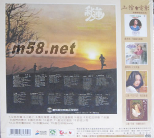 01. 又見秋蓮 02. 小路上 03. 情在深處 04. 鳳仙花兒逢春開 05. 惜別 06. 彩虹的呼喚 07. 秋蓮 08. 我們的春天 09. 風(fēng)在林梢 10. 縱然 11. 星兒知道我 12. 昨夜小雨 13. 又見秋蓮(Kala) 14. 秋蓮(Kala) 15. 風(fēng)在林梢(Kala)