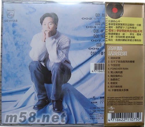 話說從頭(留聲經典復刻系列)(m58.net) 任誰的心中, 都會想要緊緊抓住這樣的一首歌 還好,我們留下了這些聲音 環球上華留聲經典復刻版系列 精選寶麗金、綜一、華星、環球、上華...等等時期 經典專輯 現在,低價回饋給深愛音樂的你