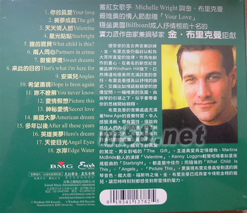 1.Your Love 你的真愛 2.The Gift 美夢成真 3.Valentine 天天情人節(jié) 4.Starbright 星光點(diǎn)點(diǎn) 5.What Child is This? 誰的寶貝 6.Partners in Crime 兩人同心 7.Sweet Dreams 甜蜜夢境 8.That's What I'm Here For 來此的目的 9.Angles 安琪兒 10.Hope Is Born Again 希望涌現(xiàn) 11.You Never Know 妳不了解 12.Picture This 愛情假想 13.Secret Love 神秘愛情 14.American Dream 美國大夢 15.After All These Years 多年以后 16.Hero's Dream 英雄美夢 17.Angel Eyes 天使目光 18.Edge Water 水岸