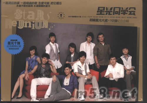 星光同學會-星光大道10強紀念專輯(m58.net) 一起流過的淚,一起唱過的歌,怎么可能把它遺忘. 永遠不散布的筵席,永遠燦爛的星光 2007年超光十強:安伯政,李宣榕,周定緯,林宥嘉,許仁杰,楊宗緯,潘裕文,盧學叡,謝震廷 超值加贈:星光十強,成長精華紀錄 BONUS DVD