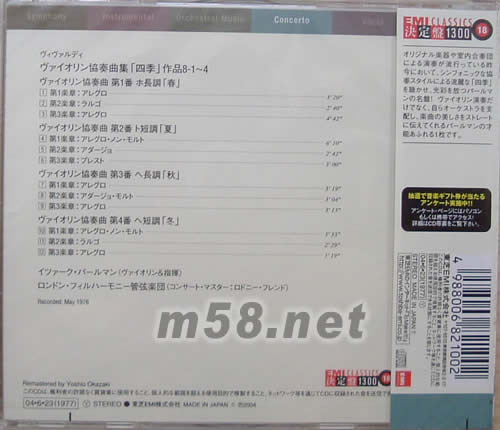 VIVALDI四季(24BIT日本版)專輯背面圖片