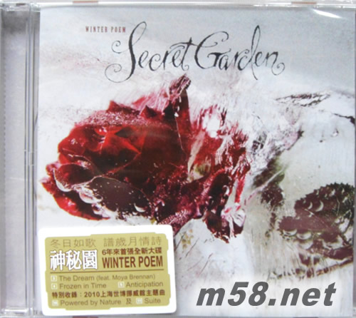 WINTER POEM 冬之詩(港版)(m58.net) 15年來的全世界的銷售量接近5百萬 11首全新創(chuàng)作歌曲, 以純音樂為主 *重點(diǎn)推介歌曲 "The Dream" 請來歌手Moya Brennan作主音, 加上那弦樂配樂和人聲和音, 完全地表達(dá)出夢境中那種朦朧而柔和的感覺。 *另一首歌曲"Mary's Lament" 由 Brendan Graham("You Raise Me Up" 作詞人) 作詞, Fionnuala Gill主唱。 *碟中第10首歌 "Powered By Nature" 是2010年上海世博挪威展館的主題音樂, 由神秘園和捷克國家交響樂團(tuán)演奏。