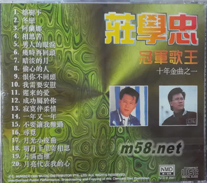 01. 榕樹下 02. 冬戀 03. 阿蘭娜 04. 相思苦 05. 男人的眼淚 06. 幾時再回頭 07. 暗淡的月 08. 偷心的人 09. 恨你不回頭 10. 我需要安慰 11. 遲來的愛 12. 成功屬于你 13. 寂寞伴柔情 14. 一年又一年 15. 不要讓我難過 16. 尋覓 17. 月光小夜曲 18. 明月千里寄相思 19. 月滿西樓 20. 月亮代表我的心