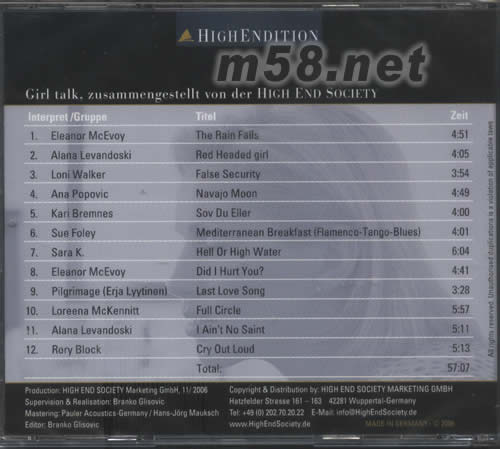 由「德國高級音響協會」High End Society出品的錄音已不經不覺間出至第10輯,而這第10輯的標題為《Girl Talk》。顧名思義,《Girl Talk》是一張全女聲或由女將演奏樂器的發燒級錄音。