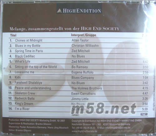 測試 11 MELANGE第11輯(m58.net) 首次看到標題即聯想到維也納melange(梅蘭錫)咖啡,本專輯帶也之理念是"good muic"好音樂如CD的封面之不同形狀小卵,今天雖是獨立個體.有朝一日它們不難成為一體.回歸大地.一首首不同類型的歌曲匯入專集即成"good muic"好音樂專輯,更可啟迪聽者對好音樂之詮釋.一如過往,本專集以更勝原版音效為主.所有CD制作均以國際red book Specifisations 為規格,例如(less than 120 BLER-block error rate)等,更由德國老虎魚工作室(pauler acoustics)作本專輯后期混音工作,限量金碟版,音樂出來,信心保證.