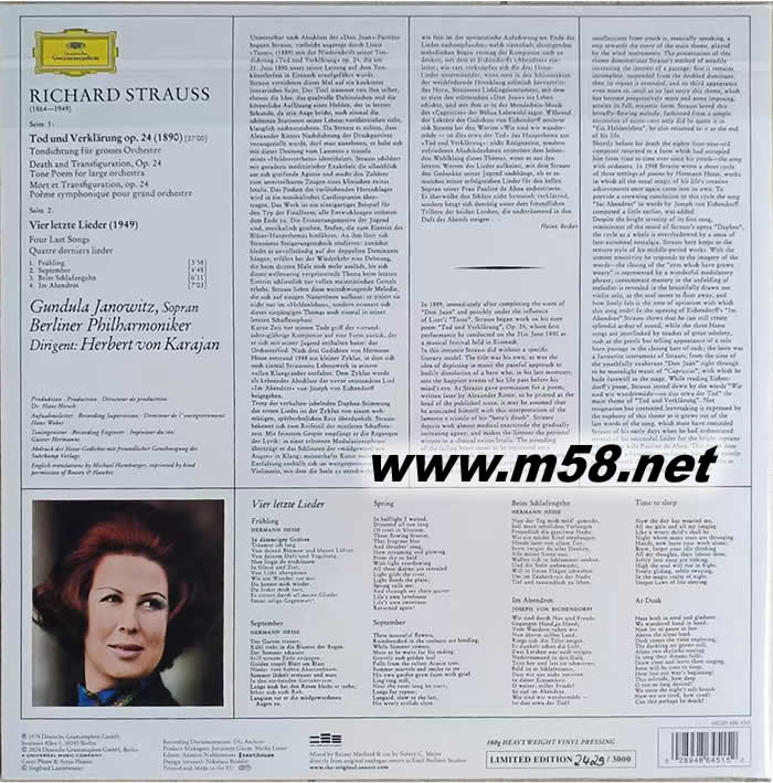 STRAUSS 卡拉揚指揮 TOD UND VERKLARUNG DEATH AND TRANSIIGURATION 黑膠(DG唱片125周年紀念版 藍膠)專輯背面圖片