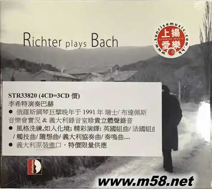 李赫特演奏巴赫鋼琴作品集 Richter plays Bach 4CD(m58.net) 李希特演奏巴赫 俄羅斯鋼琴巨擘晚年于1991年 瑞士/ 布達佩斯 音樂會實況 & 義大利錄音室珍貴立體聲錄音 風格洗練,如入化境; 精彩演繹: 英國組曲/ 法國組曲/ 觸技曲/ 隨想曲/ 義大利協奏曲/ 奏鳴曲… 義大利原裝進口,特價限量供應