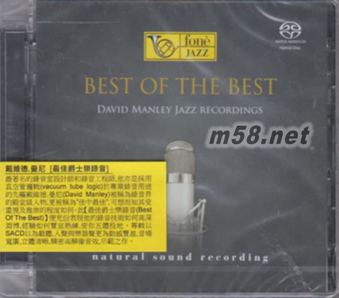 最佳爵士樂錄音 David Manley Jazz Recordings [Best Of The Best] SACD(m58.net) 1. 最著名的錄音室設計師和錄音工程師,他亦是採用真空管邏輯(vacuum tube logic)於專業錄音用途的先軀戴維德.曼尼(David Manley)被稱為錄音界的殿堂級人物,更被稱為「佳中最佳(Best of the Best)」,可想而知其受重視及推崇的程度如何。