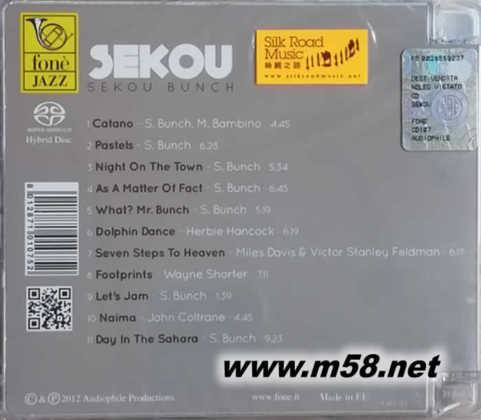 塞庫 本馳 塞庫 Sekou Bunch Sekou (爵士藝術家) SACD(m58.net) Sekou Bunch (低音結他) & Various 國際知名的爵士音樂家(Sekou Bunch)出生及成長於美國紐約,是一位多才多藝的藝術家,他擁有橫溢的音樂天份,能演奏多種樂器包括低音結他、低音大提琴、長笛、結他和鋼琴等但同樣地出色,同時,他亦是出色的畫家和舞蹈家,他在7歲時所繪畫的一幅畫現(xiàn)時被收藏在紐約美術博物館(Museum of Art, New York)。本馳精於多種音樂類別,亦能演奏多種樂器,加上他卓越的音樂才華融合於他的作品之中,使他成為一位廣受歡迎的作曲家及演奏家,他亦被邀請與多位天皇巨星合作,成為樂壇炙手可熱的重量級人物。本馳最近與發(fā)燒皇牌<豐力(Fone)>的合作,製作專輯【塞庫(Seikou)】,他所挑選的歌曲除了他自己的至愛作品包括【Catano(卡塔諾)】、【Pastels(粉彩)】、【Night On The Town(小鎮(zhèn)的晚上)】、【As A Matter Of Fact(事實如此)】、【What? Mr. Bunch(甚么?本馳先生)】、【Let’s Jam(讓我們一起夾歌)】及【Day In The Sahara(撒哈拉的一天)】,同時亦精挑了數(shù)位爵士樂巨擘的名作包括赫比•漢考克(Herbie Hancock)的【Dolphin Dance(海豚之舞)】,邁爾斯•戴維斯及維克多•士丹利•費德爾曼(Miles Davis & Victor Stanley Feldman)的【Seven Steps to Heaven(七步達天空)】,韋恩.肖蒂(Wayne Shorter)的【Footprints(足印)】和約翰.柯川(John Coltrane)的【Naima(奈馬)】等,這些歌曲都充份顯現(xiàn)本馳出眾的藝術天份和音樂才華,加上國際知名的錄音師里茲(Giulio Cesare Ricci)親自監(jiān)製,並採用最極級的器材灌錄, 配以SACD為載體,空間感十足,定位清晰,使你如置身現(xiàn)場,是鑑聽必然之選。