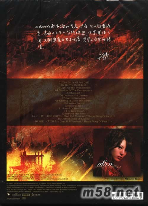 赤壁 決戰天下 CD原聲專輯背面圖片