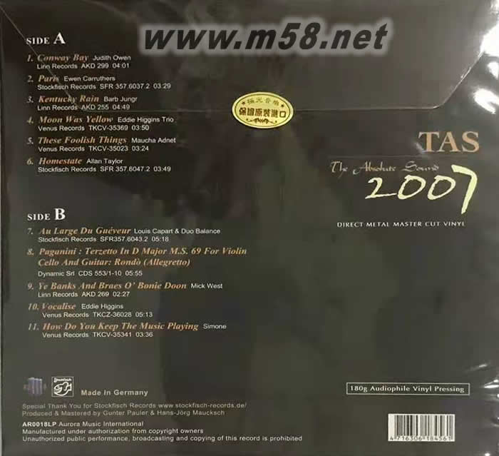 TAS 絕對的聲音LP 2007 詩歌寄情 180g 33RPM LP 黑膠 限量版專輯背面圖片