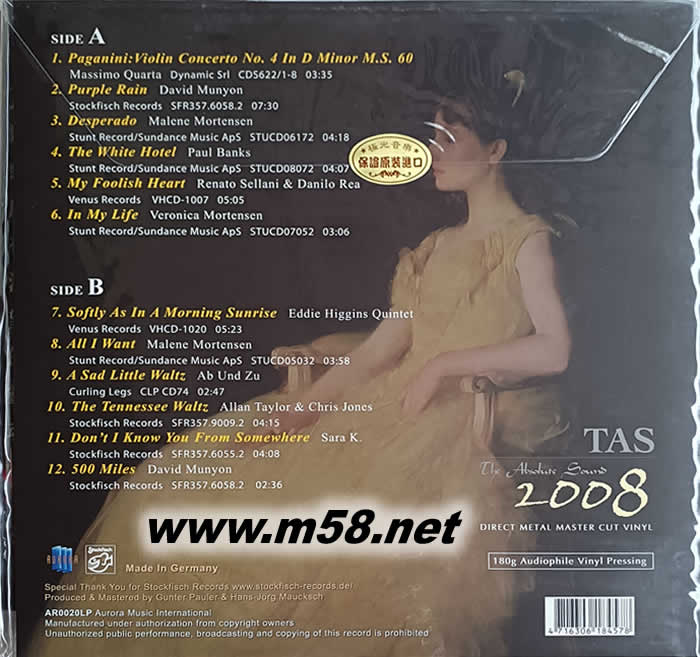 TAS 絕對的聲音LP 2008 180g 33RPM LP 黑膠 限量版(m58.net) DIRECT METAL MASTER CUT VINYL 180g Audiophile Vinyl Pressing 挑 戰 最 挑 剔 的 耳 朵 延續動人的時刻.流傳絕世的美好