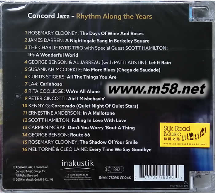 協(xié)和發(fā)燒爵士寶典 CONCORD JAZZ Rhythm Along The Years 24K金碟專輯背面圖片
