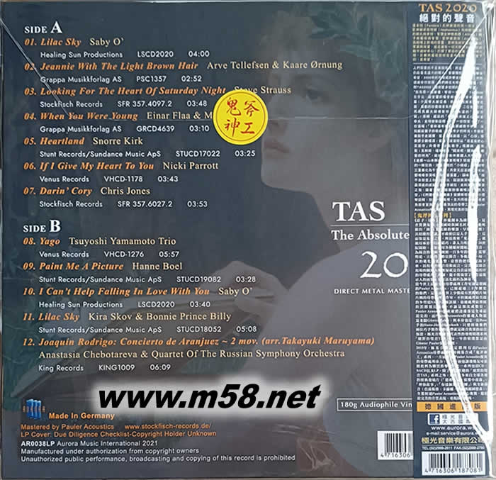 TAS 絕對的聲音LP 2020 180g 33RPM LP 黑膠專輯背面圖片