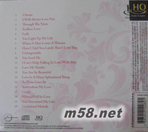 LOVE STORYS 愛情故事 HQCD(m58.net) 浪漫沙啞的磁性歌聲,真情演繹首首動人情歌,包括: I SWEAR;ENDLESS LOVE;LOVE ME TENDER;CRAZY等唱出每個愛情故事,高音質CD,HQ日本壓制,收藏版系列,優質之選