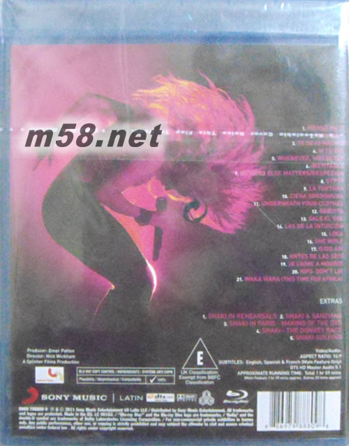 LIVE FROM PARIS 藍光DVD(m58.net) 當今拉丁樂壇最熱情、狂野的全方位天后睽違四年,2011年全新巴黎現場演唱實況 ◎ 收錄2011年6月13、14日於法國巴黎貝爾西體育館演出場次,請到曾執導碧昂絲、瑪丹娜等天后演唱會的大師級導演Nick Wickham操刀 ◎ BD總長約1小時39分,並加贈20分鐘的幕后花絮,將夏奇拉感人、搞笑的私下生活毫無保留呈現給全球歌迷 2011年拿下拉丁葛萊美「年度人物」的Shakira,可說是當今拉丁樂壇最熱情、狂野的全方位天后,她以辨識度極高的嗓音席捲國際歌壇,展現對吉他、鼓、口琴、打擊樂器的深厚演奏功力,也成為唯一拿下美國、澳洲、加拿大和英國排行榜冠軍的南美洲歌手!在全球締造超過7000萬張的銷量,拿下2座葛萊美、4座全美音樂、1座全英音樂獎的無數肯定,更在2008年富士比統計中,以僅次於Madonna、Barbra Streisand和Celine Dion的成績,榮登全球「最會賺錢的女性」第四名。 1996年推出首張專輯《Pies Descalzos》,隨即在全球狂賣超過500萬張;2001年首張英文專輯《愛情洗禮》,在全球超過32個國家締造白金銷售紀錄;2005年發行《愛的原罪》,與嘻哈鬼才Wyclef Jean合作〈Hips Don`t Lie〉,一舉拿下首位同登告示牌英文和拉丁主流榜冠軍的藝人;2009年《女狼現身》以及2010年《舞動陽光》,前后以英語和西班牙文錄音發行,獨特魅力席捲歌壇,穩坐當代拉丁樂壇國際級天后寶座! 2007年發行《愛的原罪現場演唱會》后,相隔4年之久的《激情巴黎 現場演唱實況》,收錄2011年6月13、14日於法國巴黎貝爾西體育館 (Palais Omnisports de Paris - Bercy) 演出場次,請到曾執導碧昂絲、瑪丹娜等天后演唱會的大師級導演Nick Wickham操刀。身著醒目粉紅連身洋裝,從人群中驚喜現身,Shakira緩慢走回舞臺,瞬間換裝,伴隨充滿寶萊塢式的〈Why Wait〉登場,正式揭開演唱會序幕。西班牙暢銷曲〈Si Te Vas〉、成功打入英語市場的關鍵單曲〈Whenever,Wherever〉激起歌迷一陣陣的熱情,更添她不羈狂野的演唱魅力;Shakira更要求粉絲群接唱,宛如女版瑞奇馬汀的電動馬達,大秀招牌水蛇腰,現場氣氛High破錶!四位幸運女觀眾受邀上臺同歡,Shakira更親自教跳性感舞蹈!動人抒情曲〈Inevitable〉,Shakira揹起吉他彈奏,柔情中充滿豪邁之情!異國嘻哈饒舌,結合雷鬼和電子配樂的〈Gordita〉、巧妙融合鄉村、拉丁搖滾氛圍的〈Sale el Sol〉、南美洲打擊樂器輔佐的〈Loca〉,都是選自《舞動陽光》專輯中的主打曲。全場騷動的〈She Wolf〉,Shakira更使出渾身解數,大秀誘人噴張的精湛舞姿!最后獻上暢銷曲〈Hips Don`t Lie〉、〈Waka Waka (This Time For Africa)〉,營造宛如嘉年華的熱鬧歡騰,也為全長約1個39分的音樂饗宴劃上句點!BD加贈長約20分鐘的幕后花絮,將夏奇拉感人、搞笑的私下生活毫無保留呈現給全球歌迷。 系統規格:Blu-ray Disc音效規格:DTS HD Dolby Digital Stereo Dolby Digital 5.1 Surround 時間長度:演唱會全長約1小時39分 播放區域:全區 字幕:英文、西班牙文、法文