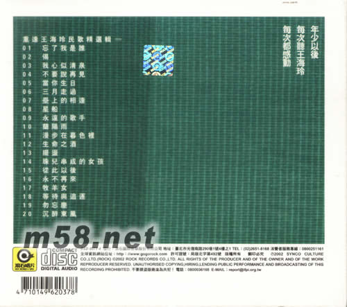 重逢 王海玲 民歌精選輯24BIT 金碟專輯背面圖片