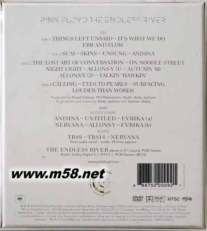 永生不息 (CD+DVD豪華影音盤) The Endless River (美版)專輯背面圖片