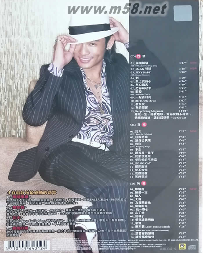 獨領風騷 新歌精選輯(精裝第二版)(m58.net) 集20年之大成 4首新歌+精選36首千萬銷量[性、妄、愛]3CD狂熱代表作 完全制霸樂壇20年,誰能?臺灣音樂史上唯一情圣舞尊雙冠王。永遠的情人 永遠的頭號舞曲大王 2005最潮的杜德偉Keep Doing繼續獨領風騷 加送5張獨領風騷明信片