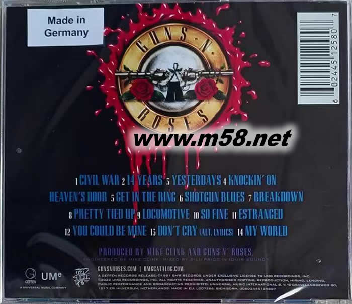 01. CIVIL WAR 02. 14 YEARS 03. YESTERDAYS 04. KNOCKIN'ON HEAVEN'S DOOR 05. GET IN THE RING 06. SHOTGUN BLUES 07. BREAKDOWN 08. PRETTY TIED UP 09. LOCOMOTIVE 10. SO FINE 11. ESTRANGED 12. YOU COULD BE MINE 13. DON'T CRY(ALT.LYRICS) 14. MY WORLD