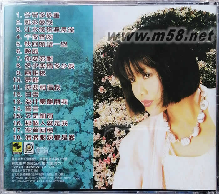 01. 今宵多珍重 02. 誰來愛我 03. 江水悠悠淚長流 04. 午夜香吻 05. 快回頭望一望 06. 晚風 07. 你要忍耐 08. 多少柔情多少淚 09. 兩相依 10. 夢鄉 11. 你要相信我 12. 白云 13. 為什么離開我 14. 誓言 15. 又是細雨 16. 那個人就是我 17. 空留回憶 18. 滴滴眼淚都是愛