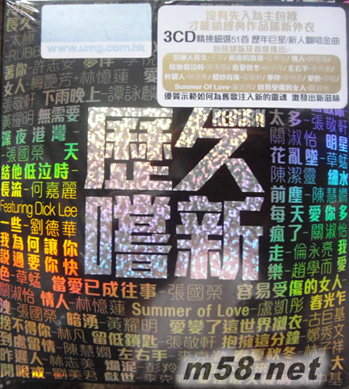歷久嘗新(m58.net) 沒有先入為主包袱 才能給經典作品簇新外衣 3CD精挑細選51首 歷年巨星/新人翻唱金曲 包括絕版及首度推出:- 但愿人長久 - 王菲 / 雨夜的浪漫 - 張學友 / 情人 - 林憶蓮 春夏秋冬 - 林子祥 / 左右手 - 李克勤 / 昨遲人 - 林志美 夢伴 - 李悅君 / 愛色 - 草蜢 / Summer Of Love - 盧凱彤 結他低泣時 - 陳潔靈/ 婚紗背后 - 張敬軒 容易受傷的女人 - 關淑怡/ 優質示范如何為舊歌注入新的靈魂 激發出新滋味 環球唱片 一直陪你遍尋好歌