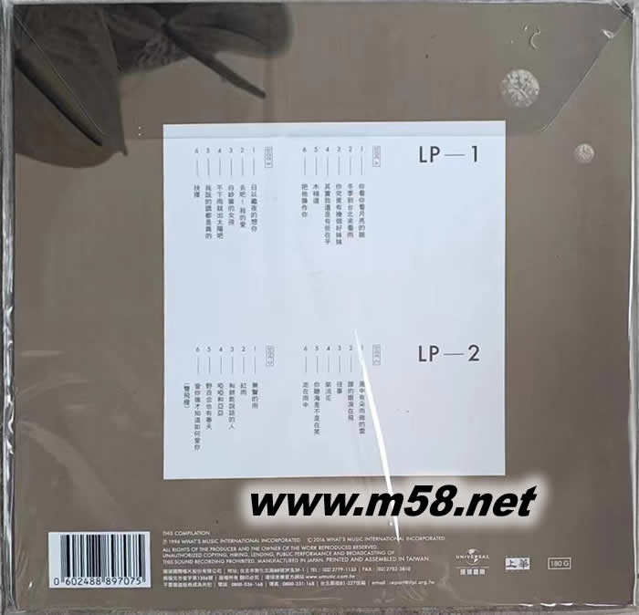 鉆石金選集1990-1994 2LP黑膠(m58.net) 孟庭葦首張個人黑膠唱片,收錄24首金牌歌曲.選用180克高品質材料 百分百日本生產180g黑膠大碟,日本壓制. 孟庭葦 鉆石金選集1990-1994 2LP黑膠 日本壓制限量編號版 上華 孟庭葦 鉆石金選集1990-1994 2LP黑膠唱片 限量編號版 180G 日本壓制