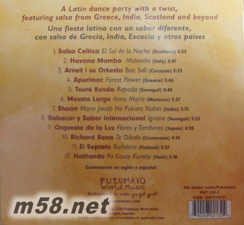 1. Salsa Celtica/ El Sol de la Noche (Scotland) 蘇格蘭多人樂團巧妙融合克爾特風笛的精彩之作 2. Havana Mambo/ Malanina (Italy) 威震全歐的義大利首席八人拉丁大團排行勁曲 3. Arnell I su Orkesta/ Ban Sali (Curocao) 加勒比海庫拉島四人組暢快熱情之選 4. Apurimac/ Forest Flower (Greece) 希臘知名拉丁開路先鋒團以希臘語唱出地中海的陽光 5. Toure Kunda/ Rapada (Senegal) 塞內加爾兄弟二人組大玩熱鬧非洲打擊樂 6. Mousta Largo/ Anna Maria (Morocco) 摩洛哥才子融合Flamenco+Salsa的熱情快板舞曲 7. Shaan/ Mana Janab Ne Pukara Nahin (India) 印度歌舞樂與Salsa的驚人合體作 8. Babacar y Sabor Internacional/ Ignane (Senegal) 塞內加爾最佳非洲古巴藝人加入非洲傳統樂器之作 9. Orquesta de la Luz/ Flores y Tambores (Japan) 日本超人氣拉丁巨團散射無盡熱情活力 10. Richard Bona/ Te Dikalo (Cameroon) 喀麥隆旅美拉丁高手快板Salsa代表 11. El Septeto/ Runidera (Finland) 芬蘭拉丁樂先驅浪漫的慢板Salsa最佳示范 12. Haitiando/ Pa Koute Konsey (Haiti) 海地樂隊延伸古巴節奏活力熱情難擋