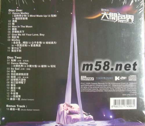 Disc One: 01. Dance Medley i 亞熱帶少年/ii Mind Made Up/iii 點解/iv 嬉戲號客機 02. 清晨 03. 隔 04. Man In The Moon 05. 蠢動 06. 赤裸抱月下 07. Give Me All Your Love Boy 09. Medley i 各自各...精彩/ii 工資多情/iii 娃娃歲月/iv 一對舊皮鞋/v 愛是無涯 Disc Two 01. 點解(合唱:林海峰) 02. Dance Medley i 大開色界/ii 小驚大怪/iii 破例/iv 玩玩 03. So Sad(合唱:草蜢) 04. 依依 05. 你說是甜我說苦 06. 偷窺(合唱:蘇永康) 07. 這雙眼只望你 08. 夜已變得騷了 09. 事后 10. 最后一夜 11. 浮花 12. 午夜情 13. 一見鐘情 14. 最后一夜(Ballad Version) Bonus Track: 15. 最后一夜(Studio Ballad Version)