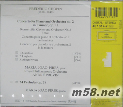 蕭邦:第二號鋼琴協奏曲&二十四首前奏曲 Chopin:Piano Concerto No.2 & 24 Preludes(m58.net) 指揮:ANDRE PREVIN 鋼琴:MARIA JOAO PIRES