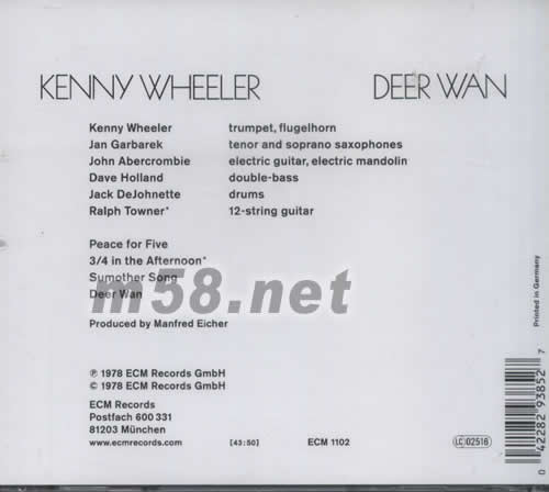 價(jià)格為估,以實(shí)到貨為準(zhǔn)! KENNY WHEELER DEER WAN(m58.net) Kenny Wheeler曾經(jīng)是英國自發(fā)藝術(shù)團(tuán)體的骨乾成員,早年演奏的是猛烈恣肆的自由爵士作品,當(dāng)1975年他作為樂隊(duì)掛頭牌者在ECM錄制專輯時(shí),大家可以聽到他的聲音已經(jīng)柔和平靜了不少。 柔號(Flugehorn),是爵士樂中一樣獨(dú)特的樂器,從字面翻譯這一樂器也可被稱作“翼號”,柔號的得名來自于它的音色,這一樂器通常被安排在大樂隊(duì)里演奏柔和舒緩氣氛的片段,聲音相當(dāng)好聽,一般樂隊(duì)中都由小號手來兼任柔號手,Wheeler本來也正好是小號手。