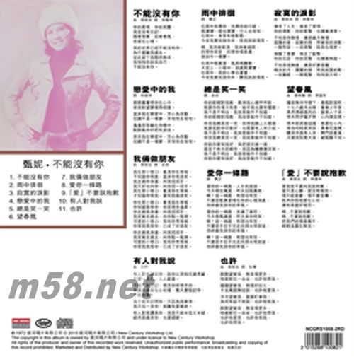 1.不能沒有你 2.雨中徘徊 3.寂寞的淚影 4.戀愛中的我 5.總是笑一笑 6.望春風 7.我倆做朋友 8.愛你的一條路 9.『愛』不要說抱歉 10.有人對我說 11.也許