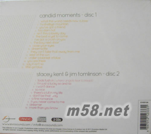 價格為估,以實到貨為準! Candid Moments真性情精選(m58.net) 「BBC爵士大獎」肯定之首席爵士女伶史黛西.肯特經典名演一次收錄,一聽難忘的甜美嗓音與動人詮釋! 目前已躍升為全球首席爵士女伶的史黛西.肯特畢業於紐約Sarah Lawrence學院,后來又前往倫敦深造,不過她的本科並不是音樂,而是文學,也因為深厚的文學底子,造就了她詮釋歌曲的獨到之處。在倫敦因緣際會下認識了薩克斯風手吉姆.湯林森而開啟了她的演唱生涯,藉著在知名的爵士俱樂部駐唱,使得史黛西獲得了Candid唱片的一紙合約,1997年發行她首張個人專輯「閉上雙眼」(Close Your Eyes),一推出馬上獲得樂評的肯定與樂迷的喜愛。接著又陸續推出了「溫柔陷阱」(The Tender Trap)與「釋放自己」(Let Yourself Go)兩張大碟。「釋放自己」是一張向美國影、歌、視三棲巨星佛雷.亞斯坦(Fred Astaire)致敬的專輯,史黛西融入自己的經歷與體會,重新詮釋佛雷所唱過的美國偉大作曲家名曲,表現出她詮釋歌曲與眾不同的深厚功力。 接著她又在Candid唱片推出「愛在午夜夢迴時」(Dreamsville)與「In Love Again」兩張專輯,「In Love Again」則再次選擇了美國偉大爵士作曲家羅杰斯(Richard Rodgers)的作品演繹,同時再次展現出她那純凈甜美的嗓音,打動無數歌迷的心。這套「真性情雙CD超級精裝」的第一張CD就是精選史黛西.肯特在Candid唱片時期所灌錄的經典歌曲,讓歌迷一次回味她經典的詮釋與美妙的嗓音。特別附贈的第二張CD「純情羅曼史」則是她與老公吉姆.湯林森一系列的共演,藉著音樂述說沈浸在熱戀中的濃情蜜意。