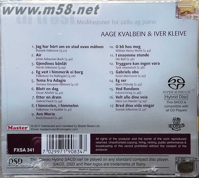 醉人感覺(jué) 發(fā)燒大提琴與鋼琴 SACD(m58.net) 這是繼「喜樂(lè)的寧?kù)o」后,艾吉瓦班和愛(ài)爾克萊衛(wèi)以大提琴/鋼琴二重奏所帶來(lái)的第二張療癒音樂(lè)。當(dāng)代最暢銷(xiāo)兩位跨界演奏家近年來(lái)往音樂(lè)能量領(lǐng)域發(fā)展,第一張「喜樂(lè)的寧?kù)o」在全臺(tái)和歐洲都創(chuàng)下驚人的銷(xiāo)售數(shù)字。延續(xù)療癒系列的概念,「海平面上的琴音」想要帶給聽(tīng)者大海一般的沉靜、靜心,為此KKV特地將兩位音樂(lè)家?guī)У饺蜃畋倍说匿浺羰遥馔ゼ词且黄┌诐崈舻谋睒O海景觀,讓音樂(lè)家的精神融入天地之間。您會(huì)發(fā)現(xiàn)艾吉·瓦班和愛(ài)爾克萊衛(wèi)演奏如巴哈「Air」、「Ave Maria」、孟克的「O bli hos meg」等多首古典或是跨界小品,散發(fā)出比以往更純粹、更深邃的氣味。就讓穩(wěn)重高雅的大提琴和水亮剔透的鋼琴交織出的海上琴音,洗滌您的心靈吧 !