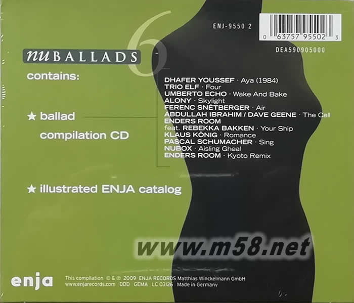 始於1996年,ENJA創辦人兼總裁Matthias Winckelmann親自選曲自家廠牌經典單曲集結發行首張BALLADS爵士精選。自此BALLADS系列全球銷售超過10萬張,對於一家堅持獨特品味的廠牌來說,是非常優秀的銷售成績。歷時13年焠鏈,第6集NU BALLADS所呈現的是現代乃至於未來的爵士發展,承襲即興精神與獨特氣象。爵士演奏營造氣氛的風格,網羅當代當紅爵士暨現代樂手的極致氛圍之作。若說Verve、Blue Note握有傳統爵士資產;則ENJA擁有媲美甚至超越前者那深具人類在爵士音樂承先啟后的爵士結晶。