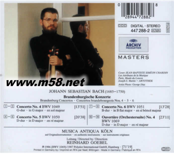 雷恩哈德 戈貝爾 - 巴赫:No. 4-6勃蘭登堡協奏曲Musica Antiqua Koln & Reinhard Goebel - Bach: Brandenburg Concertos No. 4-6(m58.net)